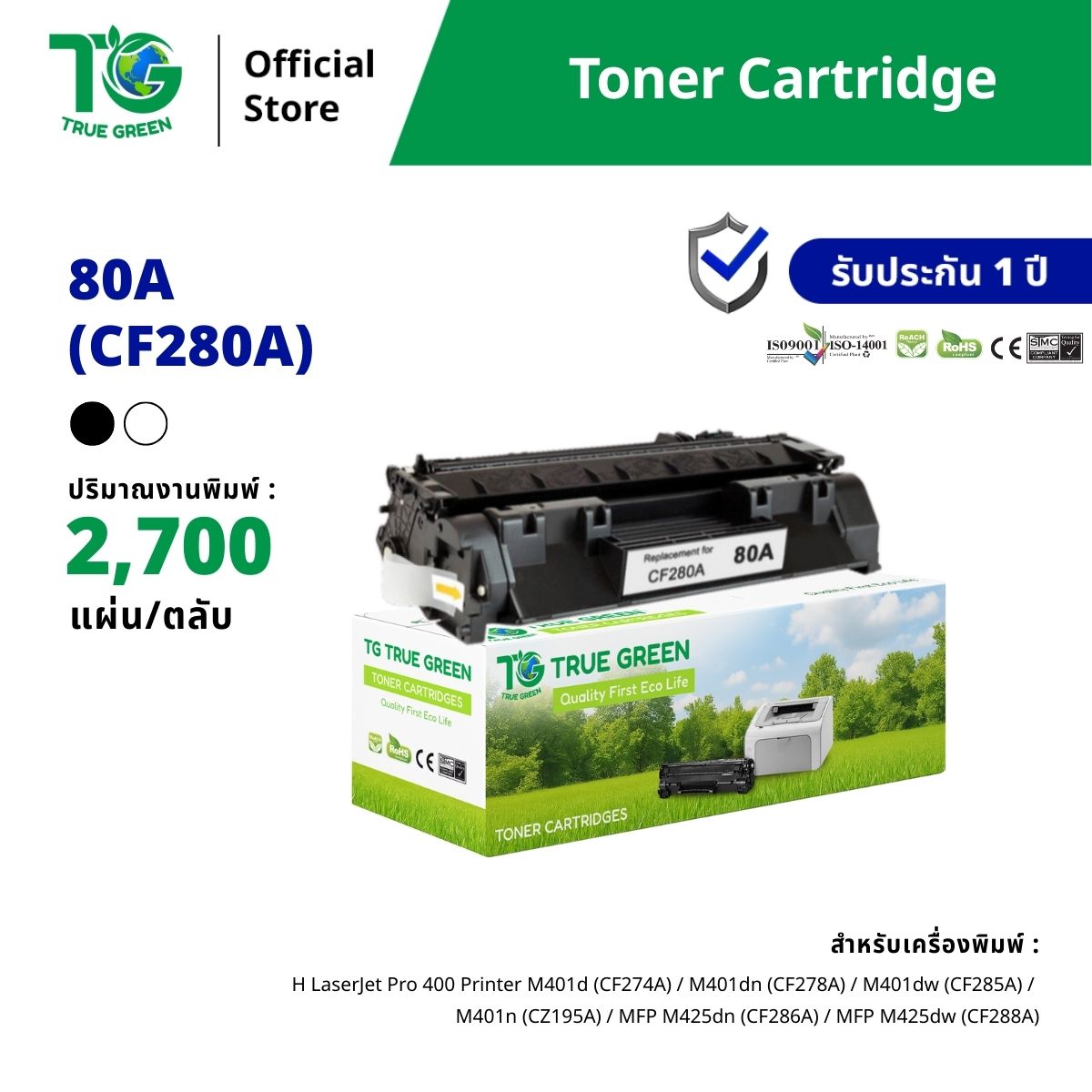 ตลับหมึกรุ่น : 80A(CF280A)