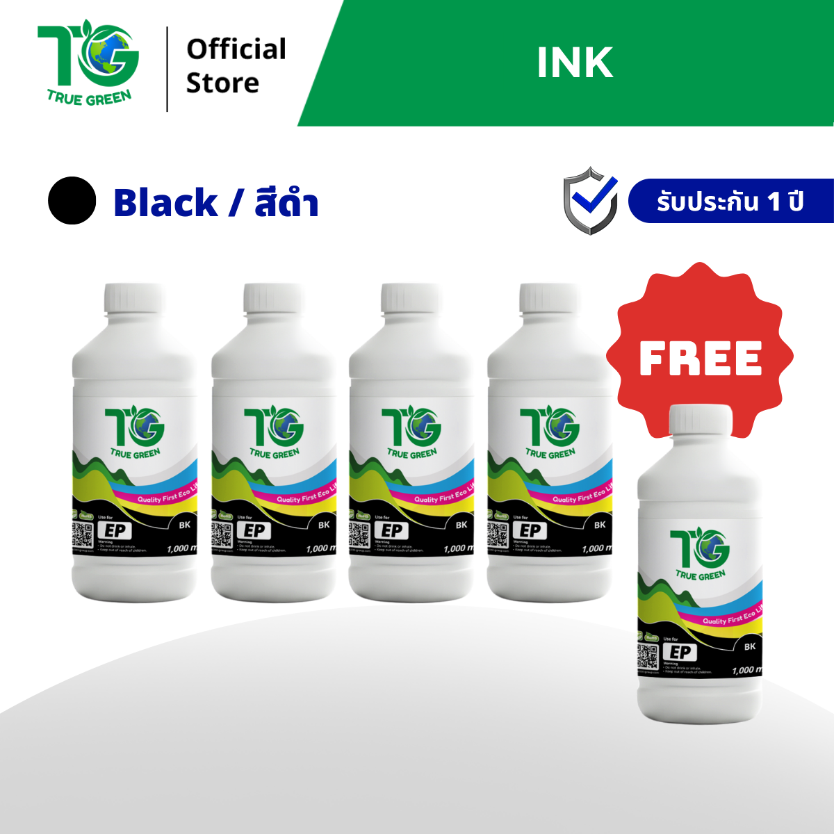 ชุดโปรโมชั่น ราคาพิเศษ ซื้อ 4 ขวด แถมฟรี 1 ขวด มูลค่า 749 ใช้เติมกับเครื่องพิมพ์ Epson แบบแทงค์และตลับหมึก หมึกพิมพ์ ชนิดไม่กันน้ำ มีให้เลือก 4 สี สีดำ/ม่วงแดง/ฟ้า/เหลือง