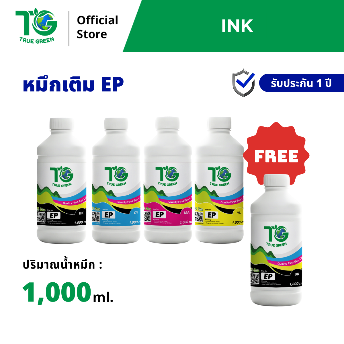 หมึกเติมสำหรับ Epson 1Kg. ชุด4ฟรี1